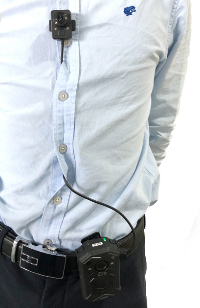 The external camera allows you to clip the EH150 unit to your belt or another location, whether it be for convenience or for secretive measures. You can then attach the external camera to the EH150 and run the cable through the inside or outside of your vest/clothes and secure it to your shoulder or other areas.